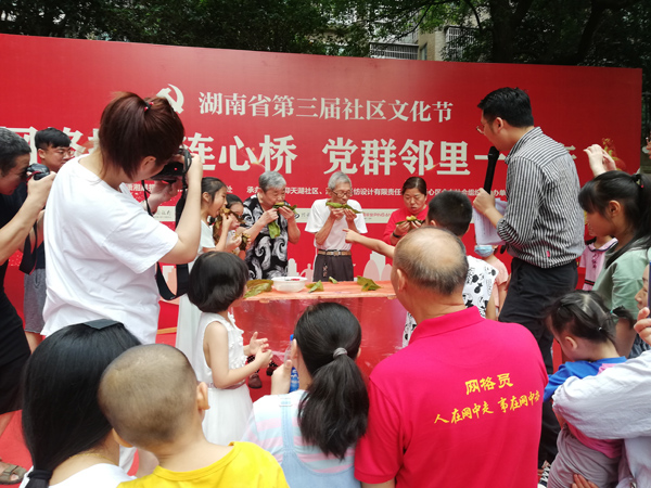 “我和我的祖国一刻也不能分割……”“没有共产党就没有新中国……”“一条大河波浪宽……这是强大的祖国,是我生长的地方”6月20日上午,激昂的音乐声响彻仰天湖社区的湖南省轻纺设计院有限公司院上空。在潇湘晨报社的支持下,仰天湖社区联合长沙市民政局三社联动项目驻点社工,在端午佳节、建党99周年即将来临之际为辖区居民朋友们举办了一场社区文化节活动。