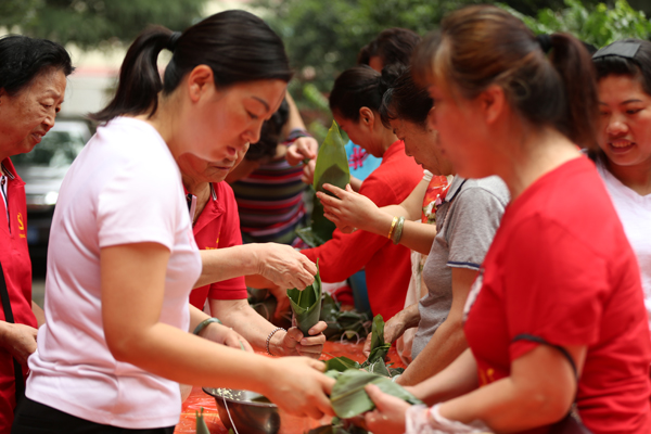 活动中,最热闹的莫过于知识抢答赛和吃粽子比赛,还有包粽子体验了。传统文化知识、环保垃圾分类知识、健康安全知识等等都难不倒现场居民们,每场抢答限6人参加,报名的人却远超此数,主持人选择参赛者都犯了难,而上场的居民也都很给力,都一一回答正确了。