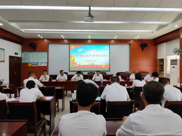 中午1时,湘筑公司党总支组织召开中心组学习会及“弘扬红色精神,谱写湘筑新篇”主题学习讨论会。会议由公司专职副书记刘鹏飞同志主持。