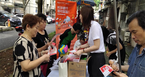 (长沙银行工作人员正在为居民讲解金融知识 摄 李诗雯)