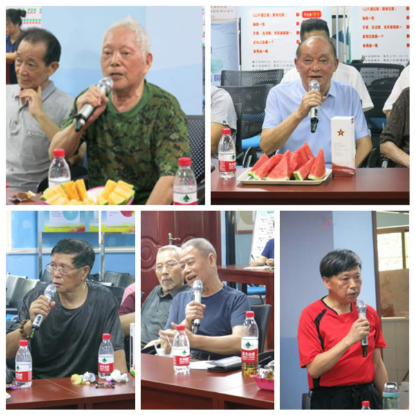 社区在每位老兵到场签名时都送上了一份纪念品,座谈会在白沙群众文化艺团党支部带来的大合唱《没有共产党就没有新中国》和《毛委员和我们在一起》后热烈进行。陈新华书记向退役军人及军人家属代表致以节日的问候和崇高的敬意,社区志愿者代表熊术泉和鲁守君两位同志也为大家带来了京剧独唱,在观看文艺表演的同时,让退伍军人们感受今年的“八一”座谈会更有了新意,更有了幸福感,老兵们也有感而发。