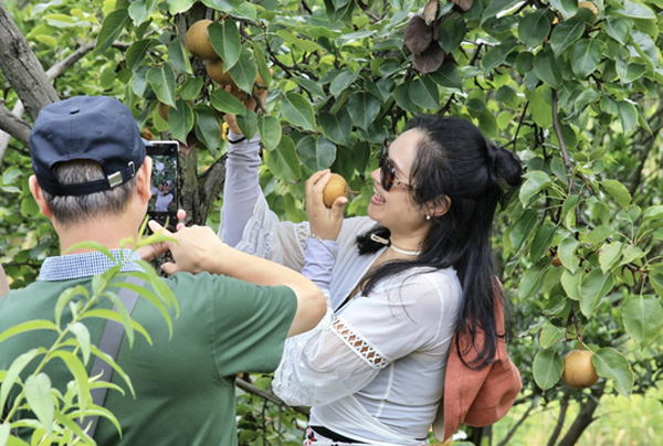 来到空气清新、阳光明媚的杜西村,车友们开启了“买、买、买”的新模式,汽车尾箱盖打开了:刚出土的花生、新宰杀的牛羊肉、还有毛菜油、黄花菜等土特产,引起了车友们的追捧。还有不少车友顶着炎炎烈日,呼朋唤友走进梨园,一定要自己亲手采摘黄花梨。看着大人们在梨树下忙碌,摘下一个个梨子,有的小朋友也忍不住了,非要大人抱起来,自己亲手去摘梨子……此时的杜西村,农家小院里、草山草坡上,一颗颗梨树硕果满枝,空气中仿佛都带有黄花梨的香甜,梨园内更是一片欢声笑语。