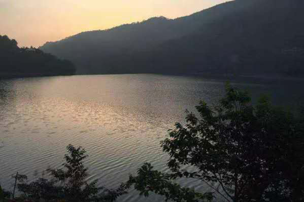 图为晨曦中的甘溪村水库