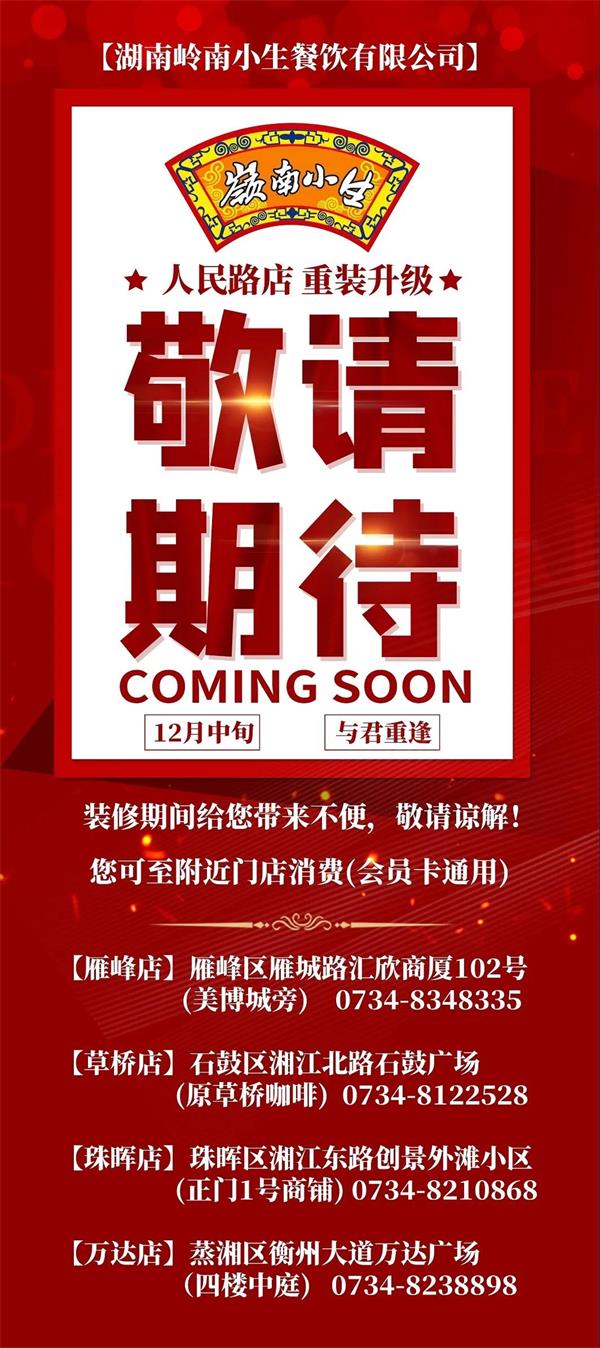 岳麓店作为岭南小生在长沙的第三家门店,在原有店面和产品的基础上,再次做出升级和改进,我们将以最好的姿态,热情欢迎您的莅临!河西的父老乡亲们,让您久等了...