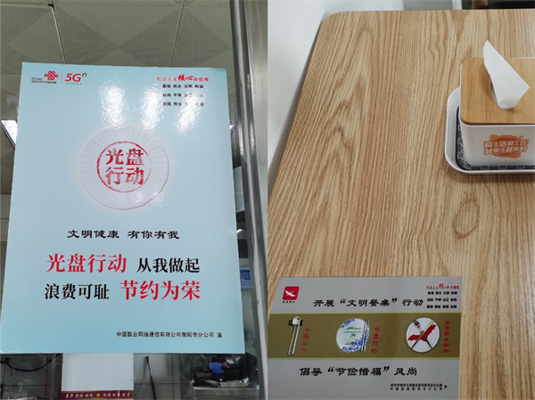 据悉,自8月18日起,为坚决落实习近平总书记关于制止餐饮浪费行为所作出的重要指示精神,衡阳联通积极行动起来,多措并举,从思想抓起、以细节深入,用“光盘”行动为引子大力弘扬勤俭节约、艰苦奋斗的传统美德。首先注重宣传,营造氛围。充分发挥党员干部的先锋模范作用,要求所有党员积极弘扬艰苦奋斗的优良传统,带头厉行勤俭节约。同时利用食堂内部的电视屏幕播放厉行勤俭节约、反对餐饮浪费的宣传标语,在食堂玻璃显眼处、在每张就餐桌以上摆放做到勤俭节约等重要提示,借助钉钉、微信群等平台,向全体干部职工大力宣传勤俭节约知识,引导大家从自我做起,从身边做起,营造勤俭节约氛围。其次创新管理,确保执行实效。结合公司人员就餐结构特点,衡阳联通采取线上订餐,依据订餐人数准备食材,同时在业务招待、会议、 培训等活动中严格执行用餐标准,按照快捷、健康、节约的要求,积极推行简餐和标准化饮食,合理安排饭菜数量,把节约理念贯穿于食堂就餐各方面。杜绝“舌尖上的浪费”。
