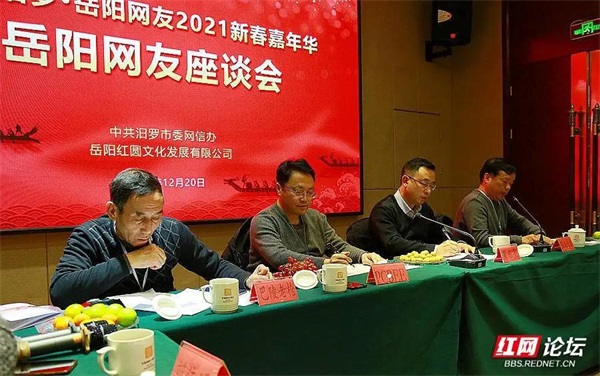 20日下午,参加活动的网友们又聚集在汩罗市华瑞大酒店三楼会议室,召开一年一度的网友座谈会。汩罗市互联网信息研究中心主任黄东亮向与会人员介绍了汩罗市网信工作情况及加强网络舆情监督管理的经验。岳阳市委网信办新闻评论科科长柳树奎在会上讲话。他希望到会网友做到“三要”,即要有情怀,要有平台帐号,要乐于奉献,争做新时代的优秀网友。岳阳红圆文化发展有限公司企业文化顾问洞庭青草主持会议,阐述“走进汩罗·岳阳网友2021新春嘉年华”活动的目的、意义,并作主旨发言。应邀参加这次活动的湖南省作协副主席刘伟明先生,在会上发表了热情洋溢的讲话。