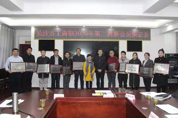 会上,刘立红宣读了《长沙市工商业联合会(总商会)关于批准新会员入会的通知》。各新会员介绍了公司基本情况并就企业发展合作等进行了热烈交流。此次新入会的企业涉及环保、教育、医疗、商贸、餐饮、广告、文化、互联网、生物技术、工程咨询、人力资源管理、食品生产和销售等多个领域。市工商联主要领导为新会员进行了颁证。