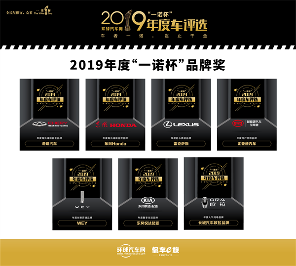 一诺杯”品牌奖,分别是奇瑞汽车荣获年度高光成就自主品牌、东风Honda荣获年度高光成就合资品牌、雷克萨斯荣获年度匠心质造品牌、比亚迪汽车荣获年度用户信赖品牌、WEY荣获年度创新营销品牌、东风悦达起亚荣获年度馨享生活品牌、长城汽车欧拉品牌荣获年度人气纯电品牌。