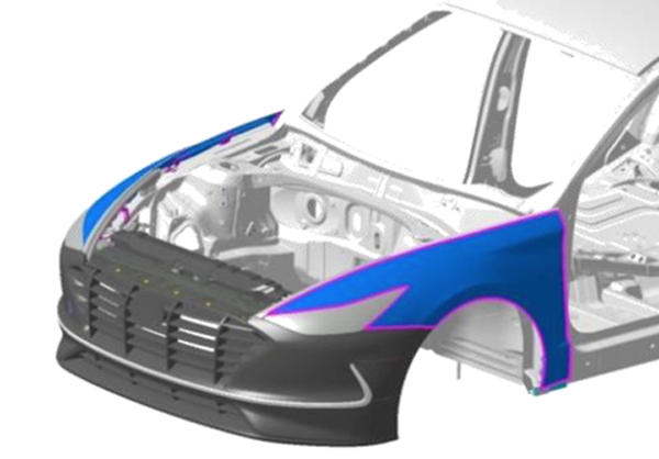 很多人觉得第十代索纳塔的左/右翼子板的形状像极了一条鲨鱼,然而在“鲨鱼”的体内蕴藏着很多工程师的设计,在经过结构调整后,在行人与左/右翼子板发生接触的时候,钢体结构会根据工程师预计的轨道变形,从而起到保护行人的作用。