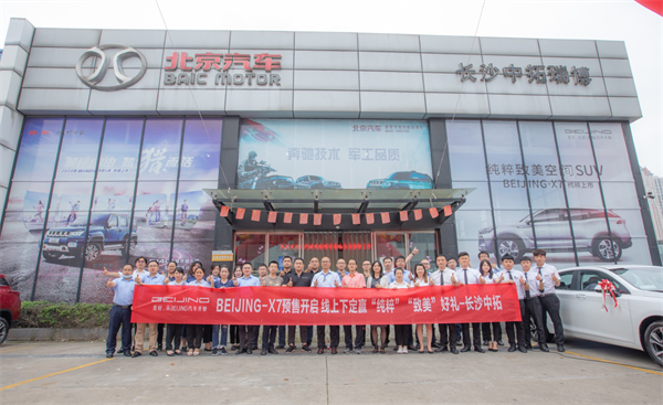 6月1日,BEIJING-X7纯粹致美探索之旅抵达长沙中拓瑞博经销店,此次纯粹致美探索之旅将由BEIJING-X7研发团队带领两组BEJING-X7车队从广州增城工厂自驾出发,分别抵达深圳、长沙、温州、上海、济南、天津等9大城市,与当地经销商形成联动,共同为大家展示BEIJING-X7纯粹空间、纯粹设计、纯粹科技、纯粹安全四大独有核心价值。
