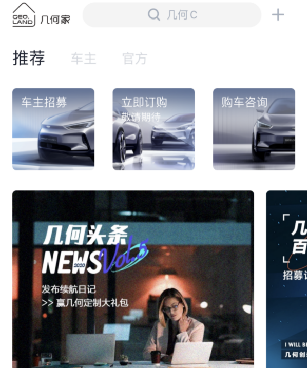 (打开几何汽车APP,点击“车主招募”进入活动主页)
