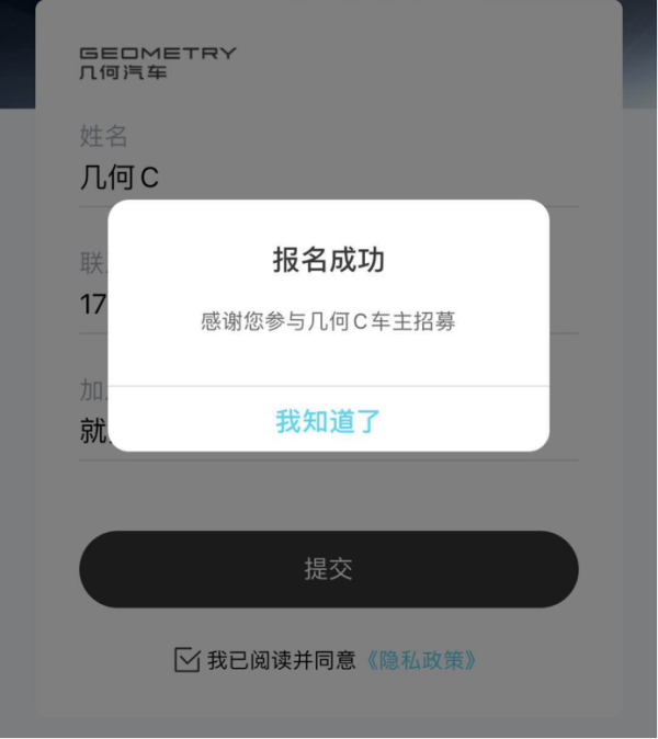 此次几何C创想官招募活动将于6月1日-6月30日期间,面向全球招募一百位几何C粉丝。只要你具备一定的内容创作能力,能进行文案编辑或者视频拍摄分享长测中的体验;性格开朗乐于社交,对汽车有自己的想法甚至热衷改装;在特定专业领域具有一定的社群影响力,能号召粉丝参与各种活动。满足其中一条,你就能报名参加活动。打开几何汽车APP,点击“车主招募”,进入几何C专栏-报名页,填写相关资料并提交,即可报名成功。