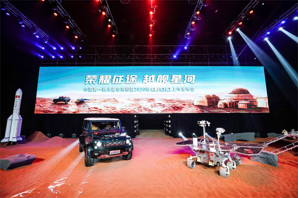 2020款BJ80与中国第一台火星车的联袂登场,是北京越野与中国航天再度携手的重要标志。发布会当天,中国首次火星探测任务工程副总指挥、探月与航天工程中心主任刘继忠也莅临现场,与北汽集团党委书记、董事长徐和谊共同按下启动键,迎来了中国第一辆火星车与2020款BJ80的携手亮相。