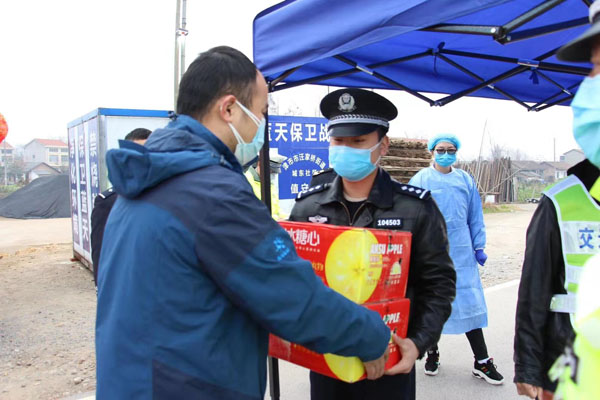 “没有你们的艰辛付出,就没有我们现在平安有序的生活,我真诚的祝愿每一个公安民警都平平安安!”。2月1日上午,湖南常德津市市的爱心市民李先生驾车来到派出所,专门为负责岑水大桥疫情防控执勤民警送来23箱冰糖雪梨,表达了广大群众感谢奋战在投疫一线的公安民警的无私奉献。