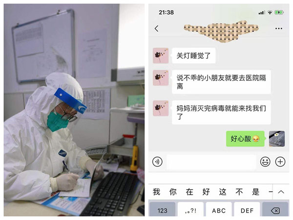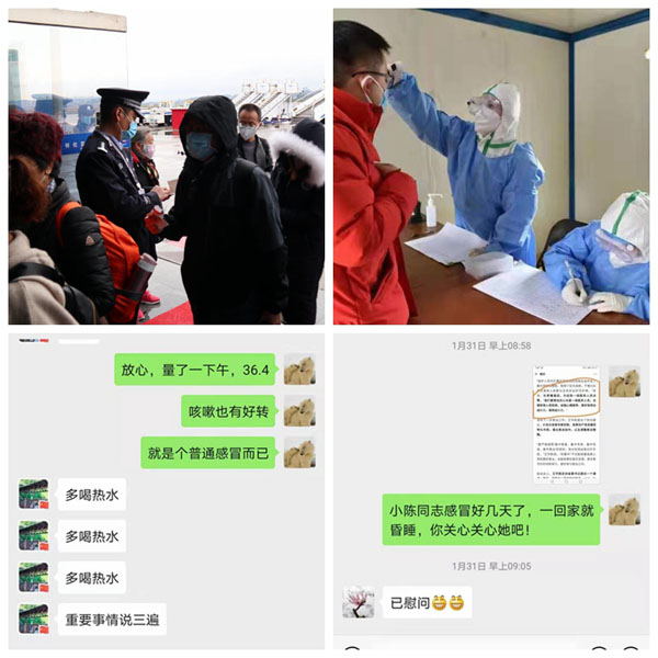 怀化机场派出所所长熊勇从1月22日开始就一直坚守在芷江机场。其妻子陈琳作为医院体检中心护士长,原本不需要去一线,但她从1月23日开始自愿加入医院发热病室抗击疫情工作,投入一线战斗。春节期间,夫妻二人各守一方,熊勇同志只好请求妻子的闺密转达慰问。截止到2月5日,怀化市第一人民医院共有6例患者成功治愈出院。