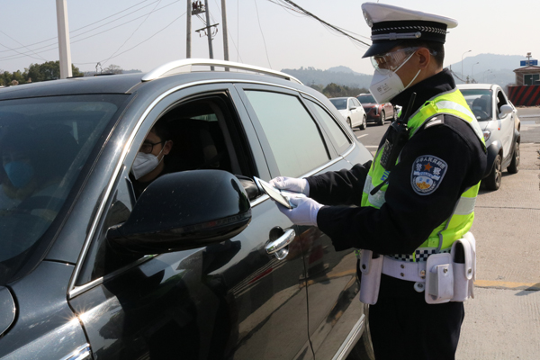 春节期间,935名公安交警坚守在入湘第一哨。高速交警日夜驻守397个高速公路收费站,各市州交警支队将467个市县执法站设为疫情检测点,积极协助卫健部门开展检疫防控工作。春节假期后,7个环鄂高速公路联合检疫站日均投入检疫力量420人次,采取4班3运转模式全天候开展检疫工作,累计检查登记车辆4.9万辆、人员12.4万人,有效阻断了疫情源头输入通道。