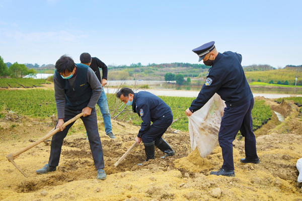 “柑橘地在哪里?要赶时间,我们马上干!”民警们操起农具、卷起袖子就往地里走去。沉睡了一个冬季的毛里湖畔的小山村顿时热闹起来,刘振华忙着松土打沟,有的负责洒药除草,有的负责搬运肥料,一抹“警察蓝”成为农忙时节乡间地头一道亮丽的风景。