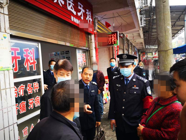 3月25日,该局防控中心和卫生计生综合监督执法局在江市镇赶集当天开展疫情防控巡查时,发现江市镇街上“龚医牙科”诊所内未悬挂有《医疗机构执业许可证》,负责人龚某艳未取得《医师资格证书》、《医师职业证书》,同时执法人员表示分别于2018年、2019年对该牙科诊所进行了行政处罚。但龚某艳并没有就此收手,也没有潜心去学习取得医生执业资格,而是继续非法行医。卫生计生综合监督执法局于3月27日将案件移送至公安机关。