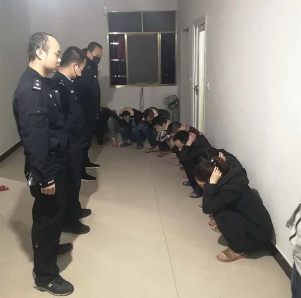 通过前期侦查、线索研判后,所长肖冬贵立即组织全所警力对辖区内所有出租房屋进行清查,在健康里1号一栋民房内发现了涉案嫌疑人的窝点。4月19日凌晨2点,民警通过蹲点守候,在时机成熟的情况下,连续突破两道房门,一举抓获12名违法犯罪嫌疑人。为进一步扩大战果,肖冬贵带领全所民警连夜突审、循线追击,分别在珠晖区湖东村一带、龙家坪洞口、荷花坪巷口附近等处相继抓获涉案嫌疑人17名。