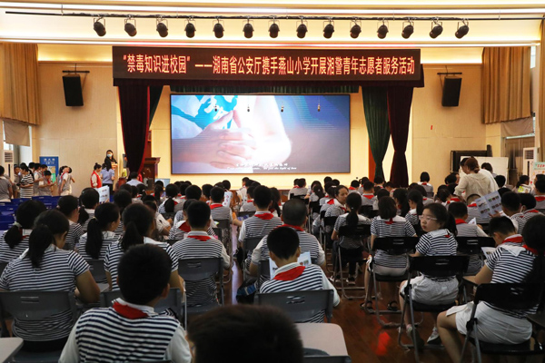 在第33个国际禁毒日即将到来之际,为深化学校毒品预防教育工作,营造校园“无毒”净土,6月19日,省公安厅在长沙市燕山小学开展“警校共建、护校安园”湘警青年志愿服务之“禁毒知识进校园”活动。