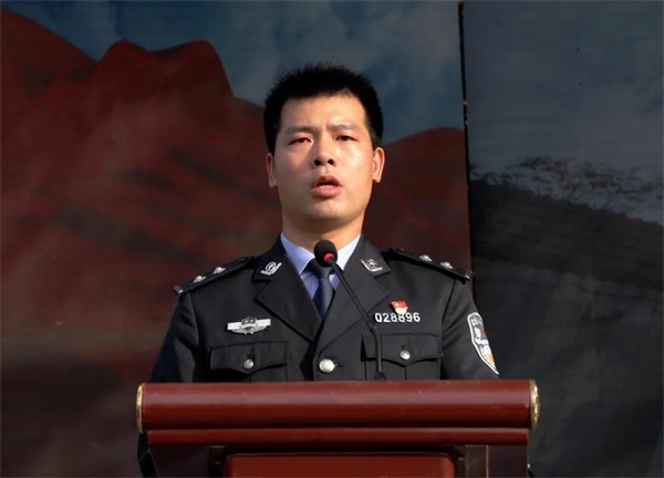 西岭派出所所长周斌介绍派出所平安创建工作。