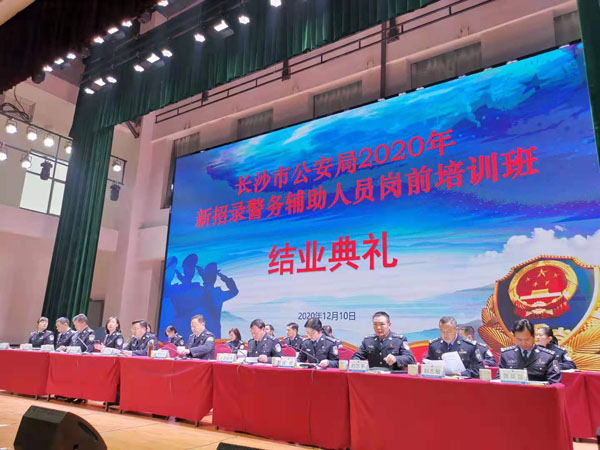 12月10日上午,长沙市公安局在湖南司法警官学院举行2020年新招录辅警岗前培训结业典礼。此次新招录的700余名辅警将奔赴全市公安机关各个工作岗位,投身火热的长沙公安辅警工作,为长沙公安队伍注入新鲜血液。