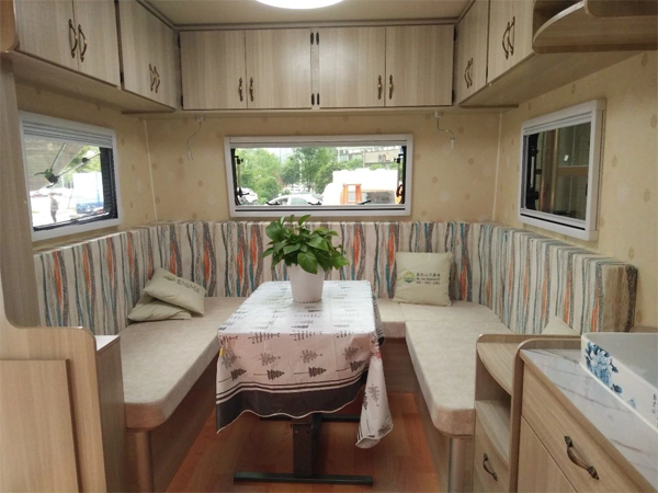 美式田园风格的营地拖挂房车内部。