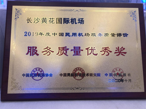 2020年10月29日,“2020中国民航四型机场建设发展大会暨成果展”在厦门成功举办,大会公布了2019年度民用机场服务质量评价结果,长沙机场在三年一度的中国民用机场服务质量评比中,从全国36家千万级机场里脱颖而出,凭借优质的服务荣获“2019年度中国民用机场服务质量优秀奖”,这是此次评比的综合类最高奖项,也是长沙机场继2016年被评为“十家优秀机场”后再获殊荣。