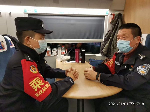 2021年元旦两天假期,怀化铁路公安乘警支队严抓乘警值乘工作标准,用最好的工作状态、最佳的警容风纪值乘列车、服务旅客。