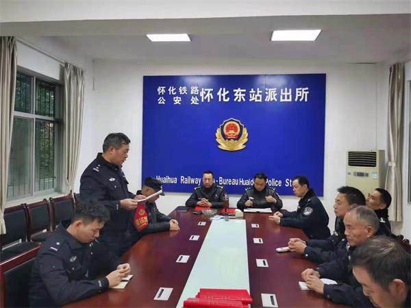 在首个“中国人民警察节”即将到来之际,结合“全警政治大练兵”、“坚持政治建警 全面从严治警”教育整顿活动,进一步激发全所民警干事创业的勇气和决心,在2021年争创佳绩。1月8日,怀化铁路公安处怀化东站派出所组织开展“重温入警誓词 迎接首个人民警察节”活动。
