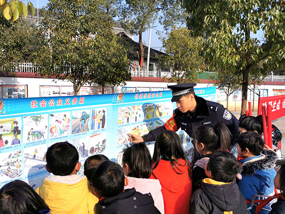 1月12日上午,怀化铁路公安处新晃站派出所民警,走进新晃县鱼市小学校园,为学生们送来一堂“假前必修课”。