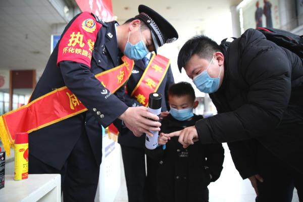 民警们还特意开设了“防疫”服务窗口,专门为部分忘记佩戴口罩的旅客,提供专用防护口罩。一名姓王的旅客,进站时才想起自己没有带上口罩。当他听到民警宣传时,在服务窗口领到免费提供的口罩后,连连感激地说:“真是太谢谢了,铁路民警就是想的周到。”对一些跟随父母出行,没有佩戴口罩的小朋友们,女民警彭丹蕾、龙丹都会亲手给这些孩子戴上口罩。据统计,仅一个上午,怀化站派出所民警就免费为旅客提供口罩200多个。
