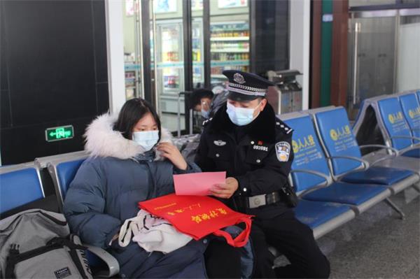 1月28日,2021年春运正式拉开大幕。为给旅客营造一个和谐、有序、温馨的出行环境,长沙铁路公安处新化南站派出所组织民警在广场、候车室开展防骗反诈宣传。