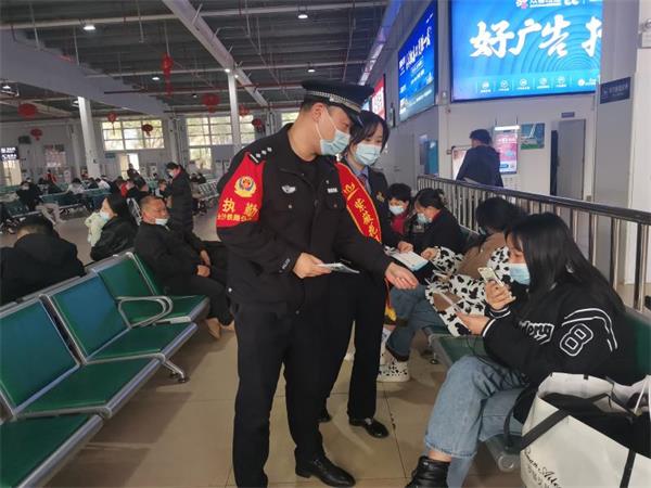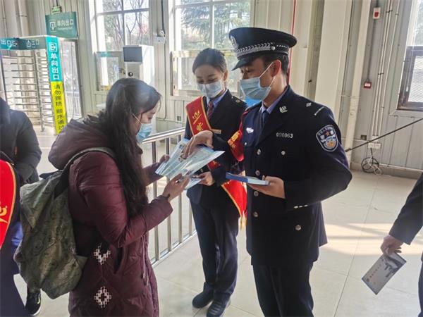 1月28日,长沙铁路公安处邵阳站派出所联合邵阳车站开展春运首日安检宣传活动。