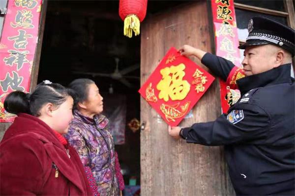 为了加强警民共建,该所民警在春节前夕,来到湖南芷江侗族自治县芷江镇五里牌村一户村民家中宣传走访,并开展为群众贴春联、挂灯笼、送节日祝福活动。