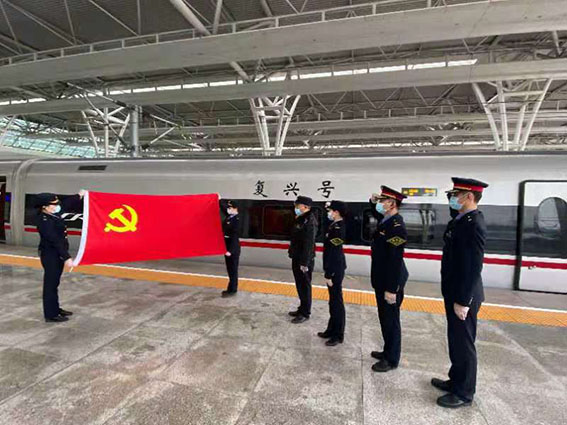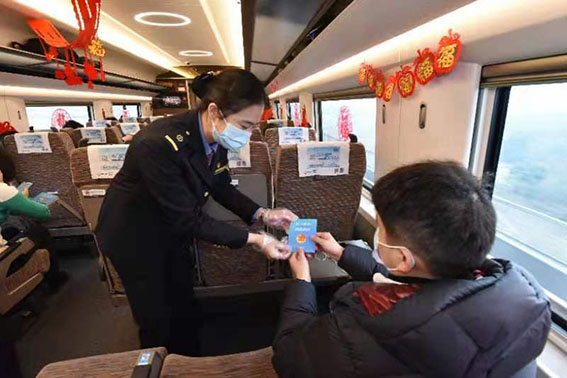 2021年2月5日正值南方小年,广铁集团长沙客运段高铁动车二队党总支联合段团委,在长沙南开往上海虹桥的高铁列车上,2月5日G1348次高铁乘务党支部开展“疫情宣讲进车厢、平安幸福过小年”活动。