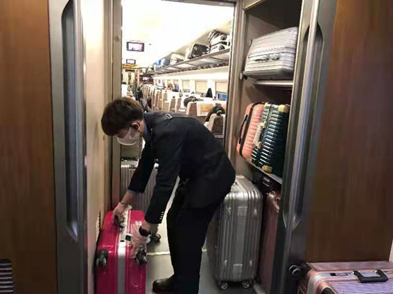 为做好疫情防控,除了每趟车开车前后要对车厢消毒外,作为与旅客面对面的“动哥”,也需要长时间佩戴口罩和手套,上下班前各量一次体温,保证自己健康的同时,也保证旅客安全。