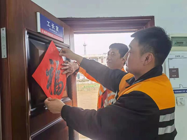下午4点,完成巡站工作的俩人,开始为他们的年夜做准备,贴对联、粘福字,春节的气息在这个偏远的工区里也是愈发的浓厚。
