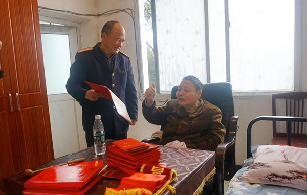 采访时,曾爱良将自己工作以来保存的20多本荣誉证书放在桌上。当过村干部的妻子识字,她用唯一能动的右手举起曾爱良过去的一本荣誉证书,目不转睛地看着,面露微笑,对着老曾竖起了大拇指。曾爱良反而不好意思地笑了。