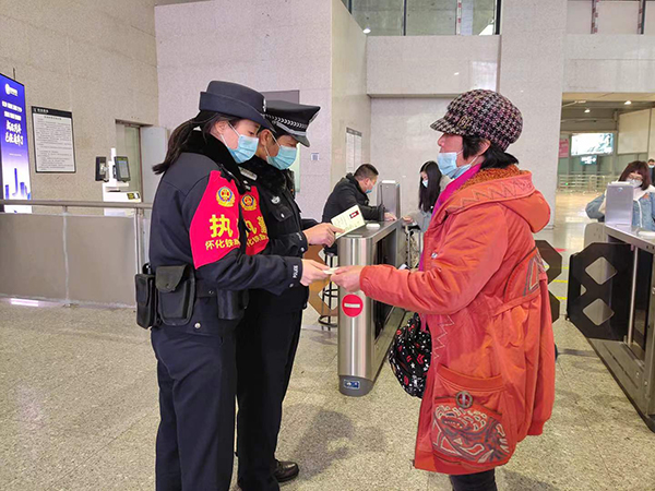 “您好,你这桶子里装的是什么东西?”“我在浙江那边的工地上做活,这都是平时用的刀具、锤子、扎钩。”进站口一男子提着盖得严严实实的桶子,引起了潘庆辉的注意。“根据铁路旅客禁止携带物品规定,这些物品是不能进站上车的,你可以让家里人过来取回去。”该男子原本十分不情愿,但是在老潘的劝说下,他交出了危险品。