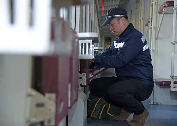 “修锁匠”们不仅要有一双巧手,还要有走路带风的双脚。每列旅客列车上的各种类型锁200余个,徐卓然和同事们还得分别负责前、中、后各6节车厢的上部服务设施检修。春运期间,有时忙起来,他们吃饭都不怎么嚼,只在嘴里打一个滚,“咕咚”一声就咽下去了,然后,跨上各自的“百宝袋”,朝着“候诊”的旅客列车奔去。