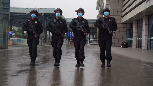 为确保春运绝对安全,特警支队提前研判形势、合理布局警力,针对春运客流特点,在原先固定岗位执勤基础上,增加武装巡逻、对车站广场、候车大厅、进站口、站台等人流量比较大的地点分时段分重点进行徒步巡逻,旅客王女士看着威武的特警队员激动的说:“在这寒冷的冬日里,特警队员挺拔的身姿就是我们群众旅途中最温暖的保障。”