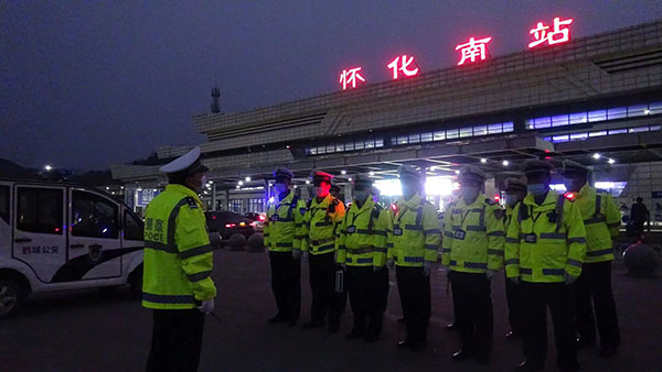 据了解,怀化铁路公安处交管支队直属怀南大队针对春节后学生流、务工返乡流、探亲流较为集中、客流叠加的实际情况,呈现高峰期集中、峰值高的特征,合理部署警力,紧盯重点违法行为。采取定点查处和巡逻管控相结合的方式,把优势警力集中在怀化高铁南站站前路,严格对过往客车、微型面包车、货车进行逐一检查,严厉查处机动车各类交通违法行为,确保交通秩序良好。同时,民警还采取现场教育提醒方式开展交通安全宣传,引导市民在开车途中注意出行安全文明、守法行车。