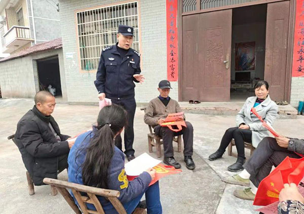 这位周公安是麻阳站派出所的警务区民警。谷达坡村便是他的辖区,在这里工作了十余年的周公安已然变成了谷达坡村民心中的老熟人了,十余年如一日扎根在这座小村庄里为村民们与铁路安全贡献一份自己的力量。谷达坡村里留守老人居多,老人们的家里基本上就是铁路旁,考虑老人们年纪大、行动缓慢,出行存在一定的安全,便与护路队员滕树勇想出了定期开展茶话会主意,邀请独居老人、村干部等一同参加。一方面可以加强与老人们互动联系,组织大家在一起聊聊天、聚聚会,排解老人们的寂寞与孤单,倾听老人们的困难和烦恼,群策群力帮助老人解决问题;一方面通报辖区近期的治安状况,结合近期易发案件类型特点,向村民发布预警信息,将法制安全、消防安全等作为重点进行了讲解,用身边的案例以案说法,提醒辖区村民加强自身安全防范,并发放铁路安全宣传资料。同时,呼吁村民积极参与到群防群治工作中来,共同维护辖区社会治安稳定。