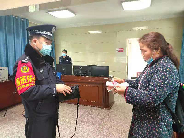 3月15日,施女士接到车站派出所电话,告知丢失的钱款已找回,要她到派出所领取时,施女士喜出望外,立即叫上其弟一同来到吉首火车站派出所,于是,出现了本文开头的一幕。当民警问及施女士为何手持国旗来所时,施女士说是派出所帮她找回了丢失的钱物,等于救了她一命。在她心目中,认为警察就代表着党和政府,于是,特意买了一面国旗赶来表达自己的感激之情。