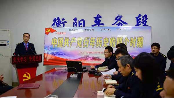 衡阳车务段地处湖南南部,管辖衡阳、郴州、永州、株洲4市沿线59个车站。针对部分党员流动性强,学习难、坚持难、管理难等问题,衡阳车务段党委借助段视频会议系统,从“新”“微”“活”三个方向打造网络视频“云党课”,把党史教育融入组织生活全过程,确保1200余名党员学习教育全覆盖,在全段上下掀起“学史明理、学史增信、学史崇德、学史力行”的学习热潮。