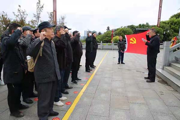 当天,这些退休的老党员,怀着无比敬仰和肃穆的心情走进这片光荣的热士,首先向牺牲的革命烈士敬献了花篮。在鲜艳的党旗下,老党员们纷纷举起右手,重温了入党誓词,进行了一次实地党日主题教育。
