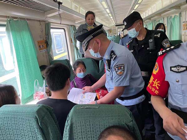 今年五一假期,不少乘客都经历了长沙铁路公安处乘警支队民警的“广播轰炸”。据悉,为有效遏制电信网络诈骗案件高发势头,切实提高群众防范意识,最大限度减少群众经济损失,长铁乘警采取“小分队+警组”方式组织乘警开展反电诈宣传。