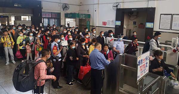 随着节日的即将结束, 在学生流、返程流叠加的情况下,湖南靖州火车站迎来了客流小高峰。靖州站派出所民警与铁路客运部门加强配合,有序应对客流,他们采取积极措施,运用科学放客的方法,对老弱病残幼重点旅客,派出专人引导组织进出站,站台上增加警力和工作人员,组织旅客有序乘降,确保广大旅客平安返程。
