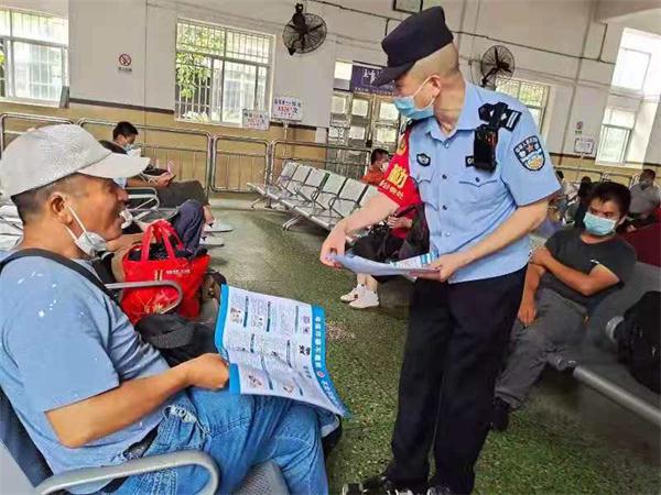 为进一步提高旅客群众识毒、防毒、拒毒意识和能力,近日,怀化铁路公安处怀东所在辰溪火车站候车室内开展禁毒宣传活动。